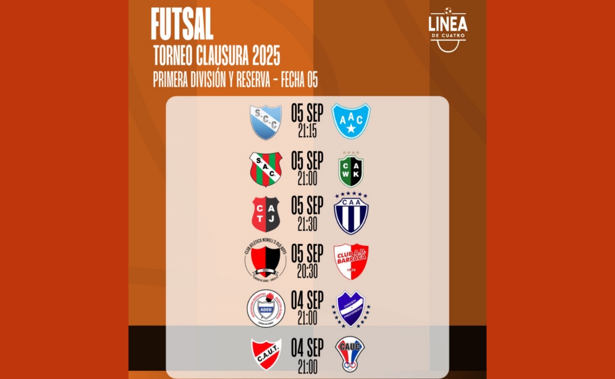 Así se jugará la Fecha 05 del Torneo Clausura 2025 de Futsal de Primera y Reserva.