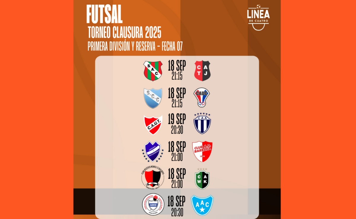 Así se jugará la Fecha 07 del Torneo Clausura 2025 de Futsal de Primera y Reserva.