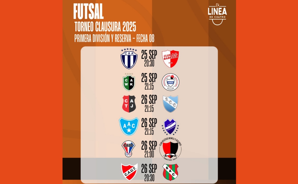 Así se jugará la Fecha 08 del Torneo Clausura 2025 de Futsal de Primera y Reserva.