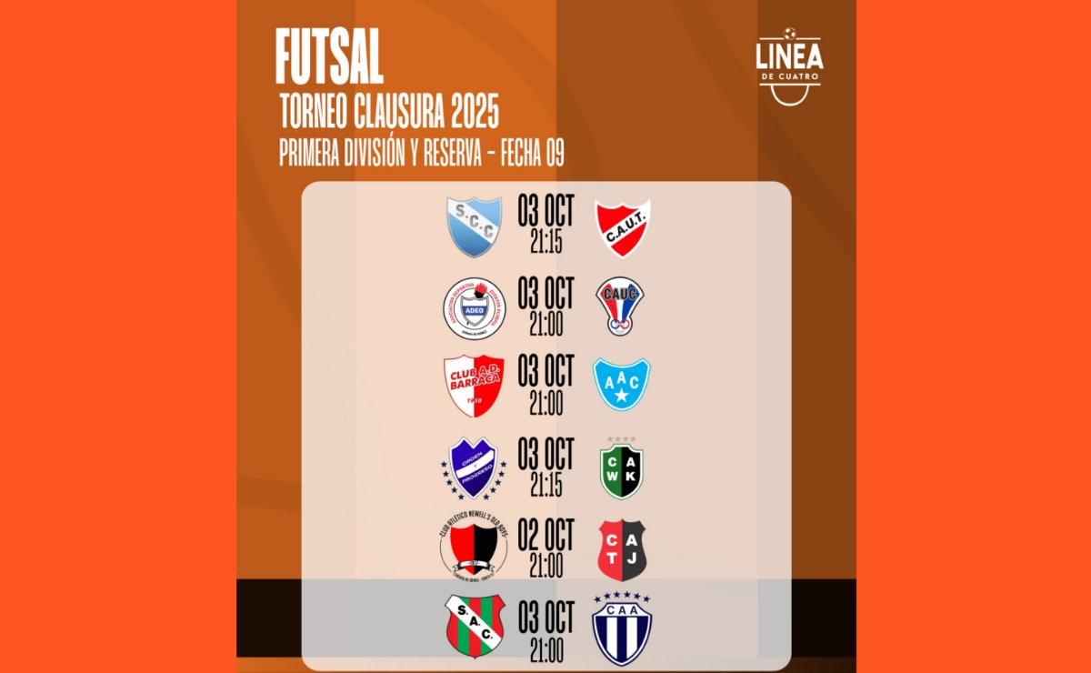 Así se jugará la Fecha 09 del Torneo Clausura 2025 de Futsal de Primera y Reserva.