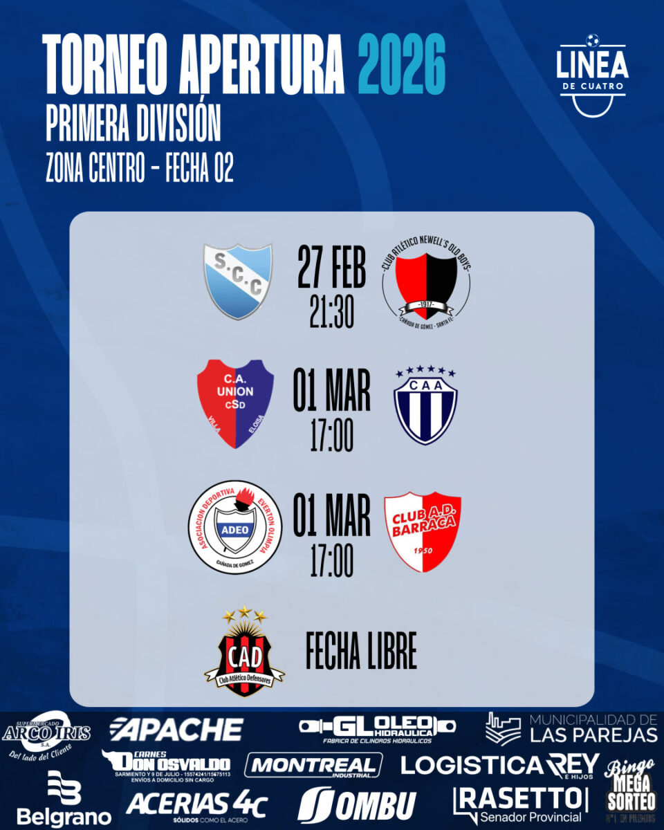 Así se jugará la Fecha 02 el Torneo Apertura 2026 de Primera y Cuarta División de la Liga Cañadense de Fútbol.