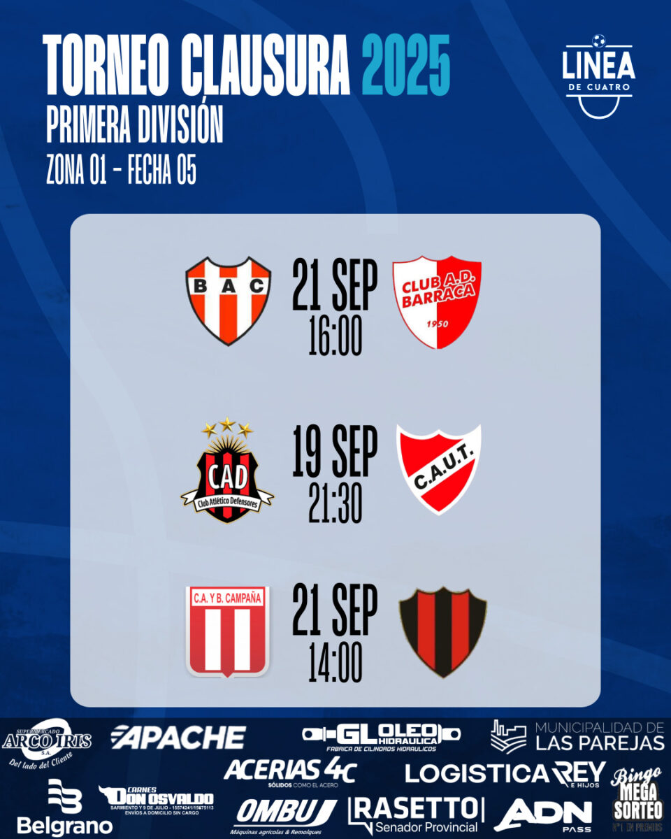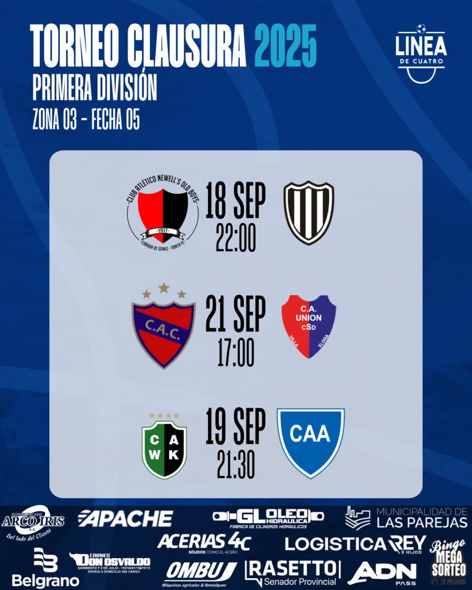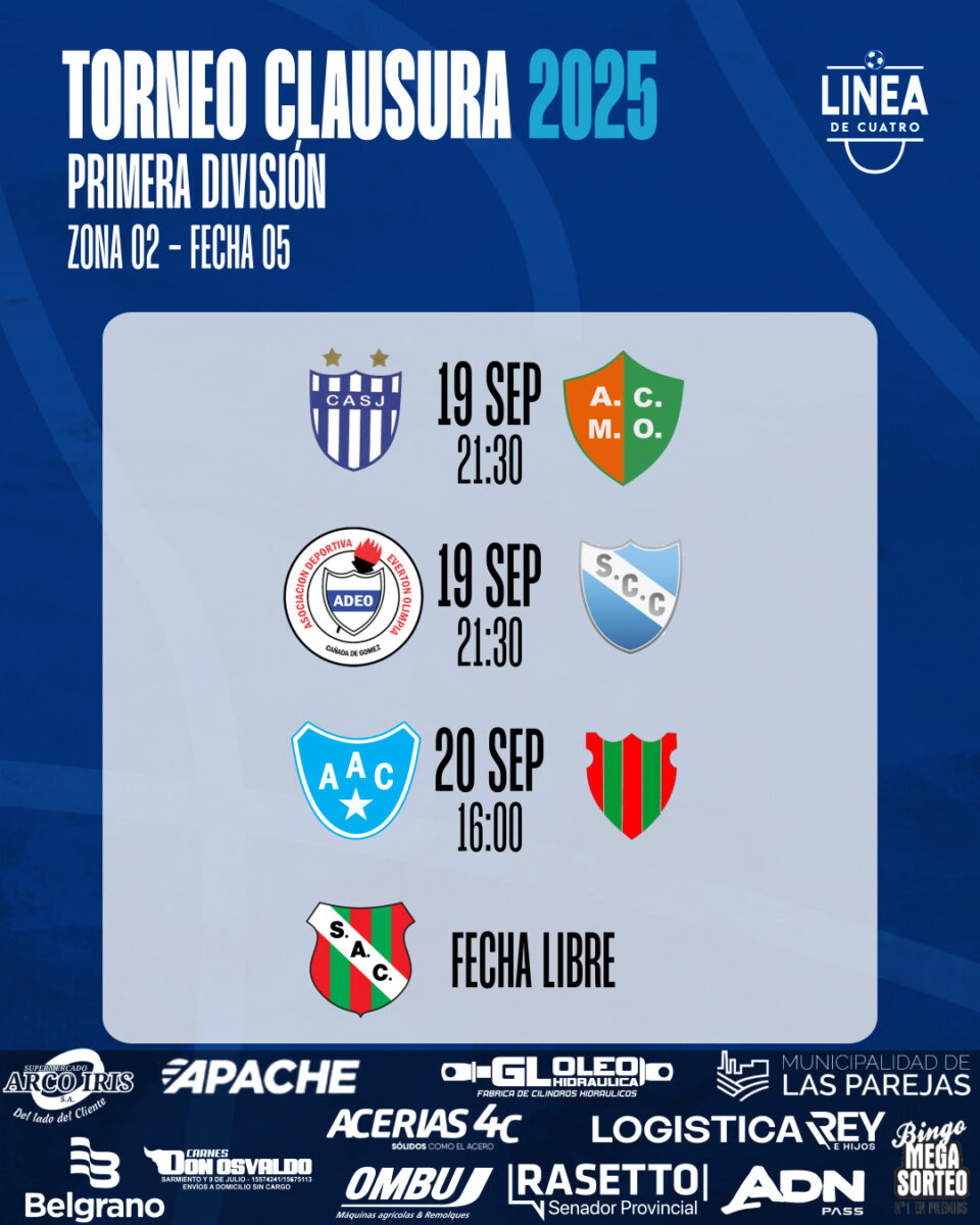 Así se jugará la Fecha 05 del Torneo Clausura 2025 de Primera y Cuarta División de la Liga Cañadense de Fútbol.