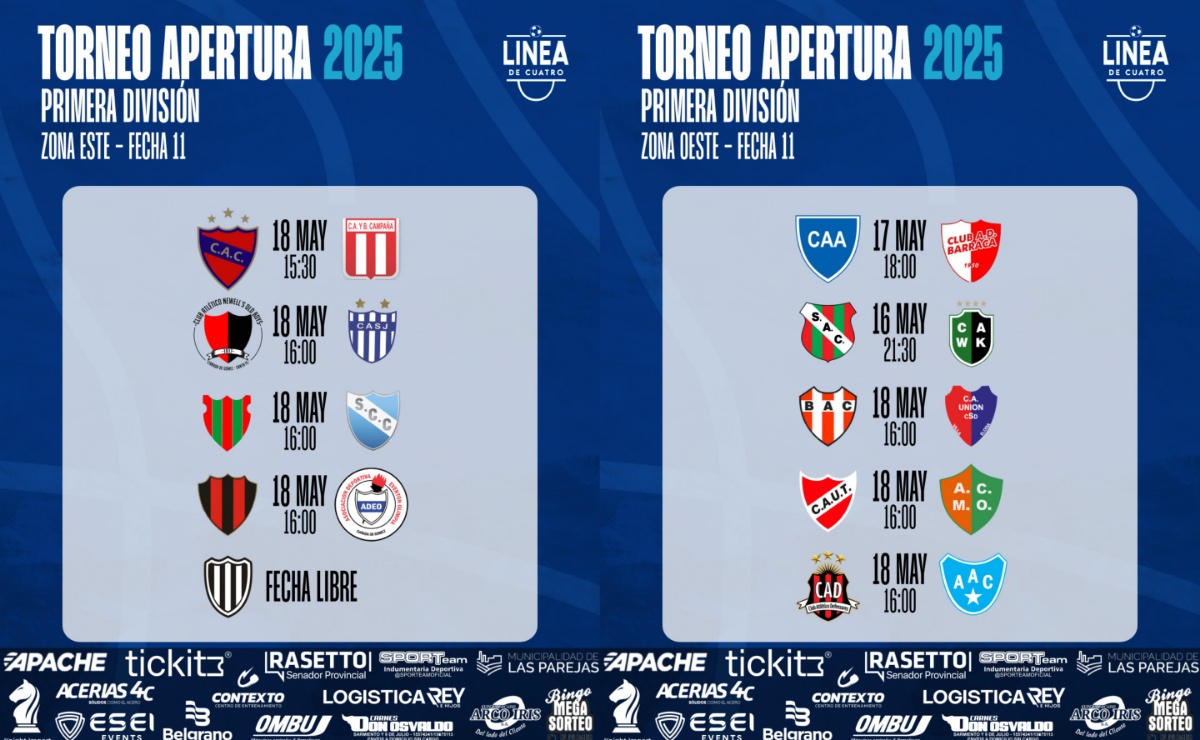 Así se jugará la fecha 11 del Torneo Apertura 2025 de Primera y Cuarta División.