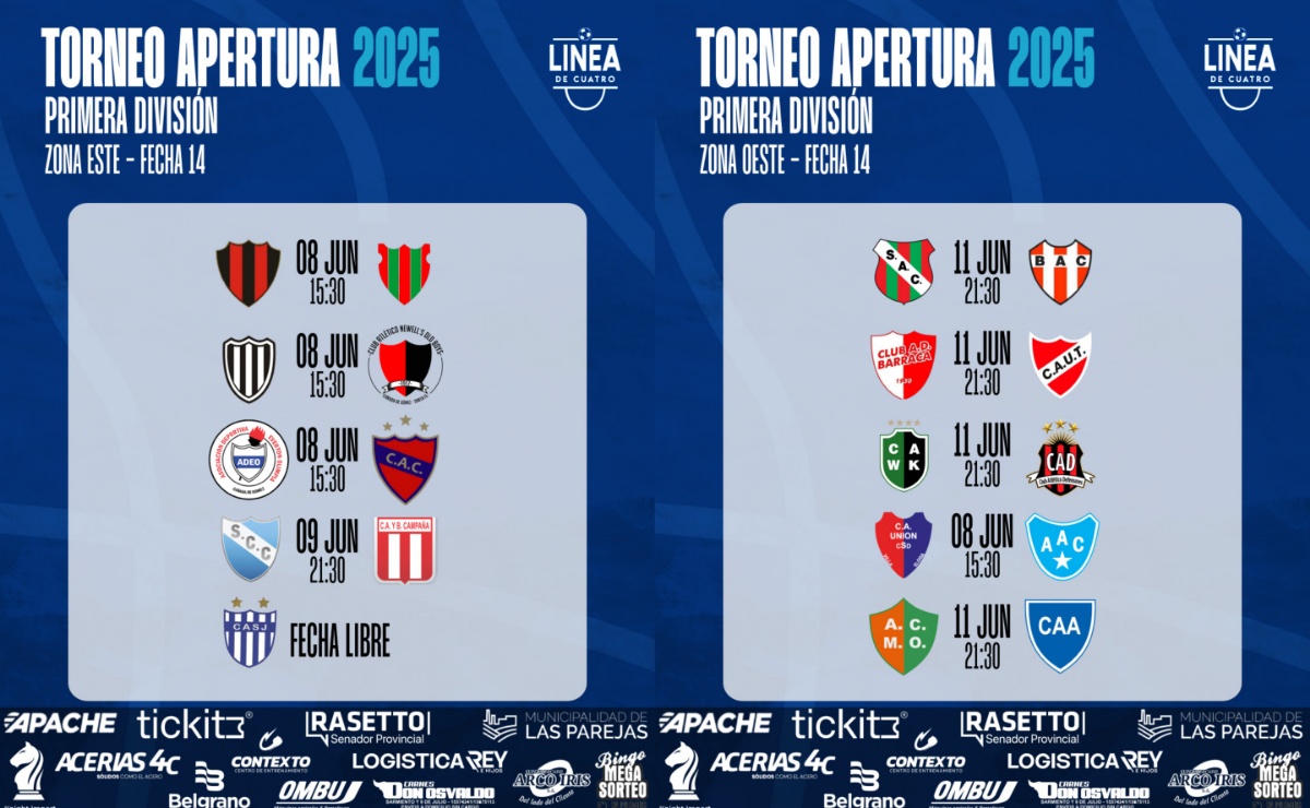 Así se jugará la Fecha 14 del Torneo Apertura 2025 de Primera y Cuarta División.