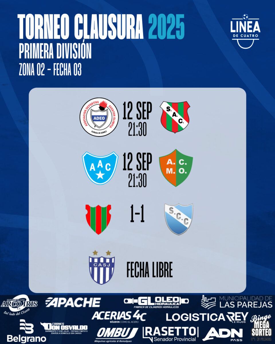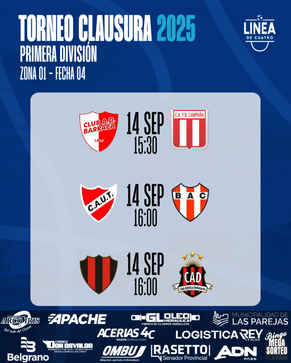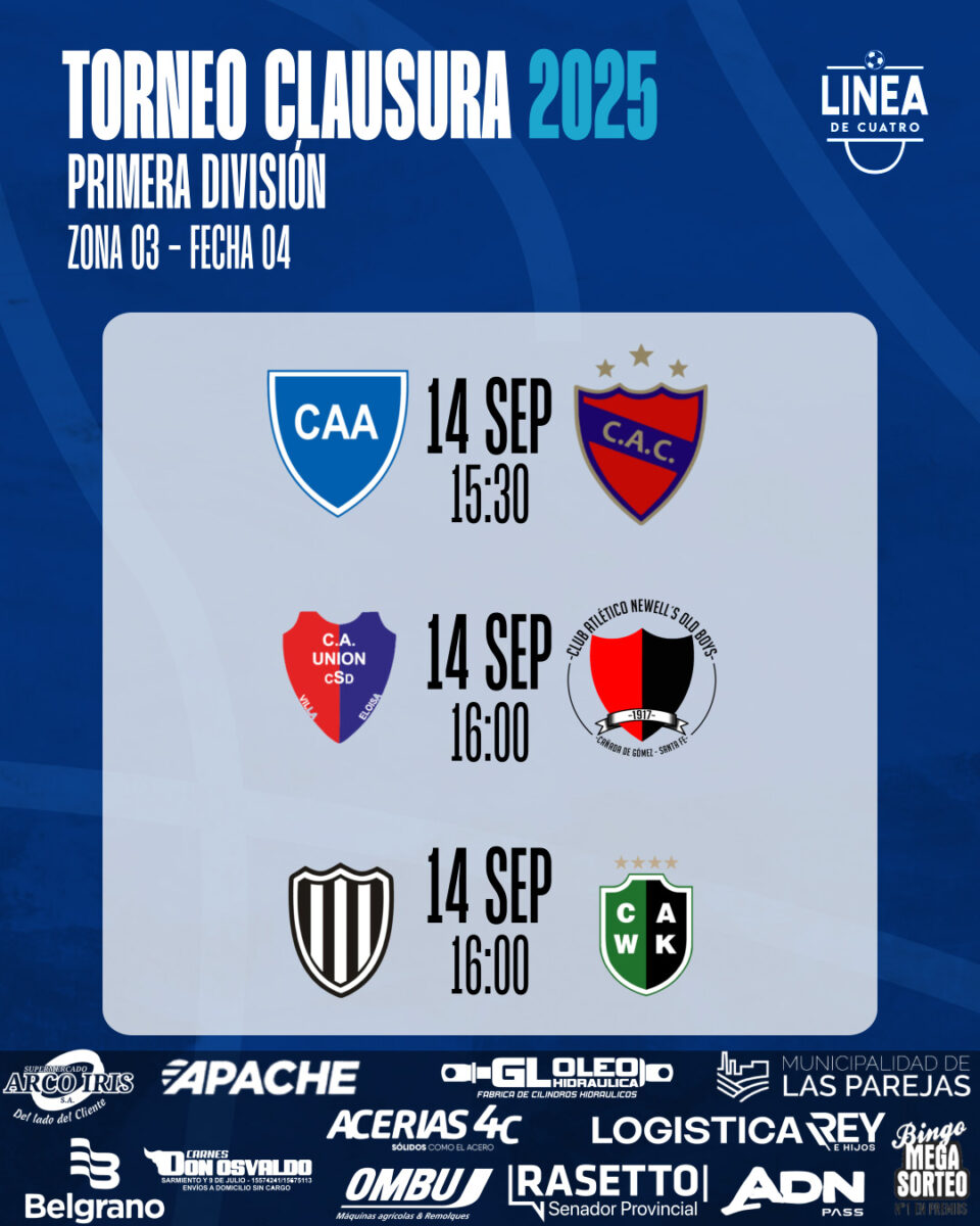 Así se jugará lo que resta de la Fecha 03 en la Zona 2 y la Fecha 04 en todas las zonas del Torneo Clausura 2025 de Primera y Cuarta División.