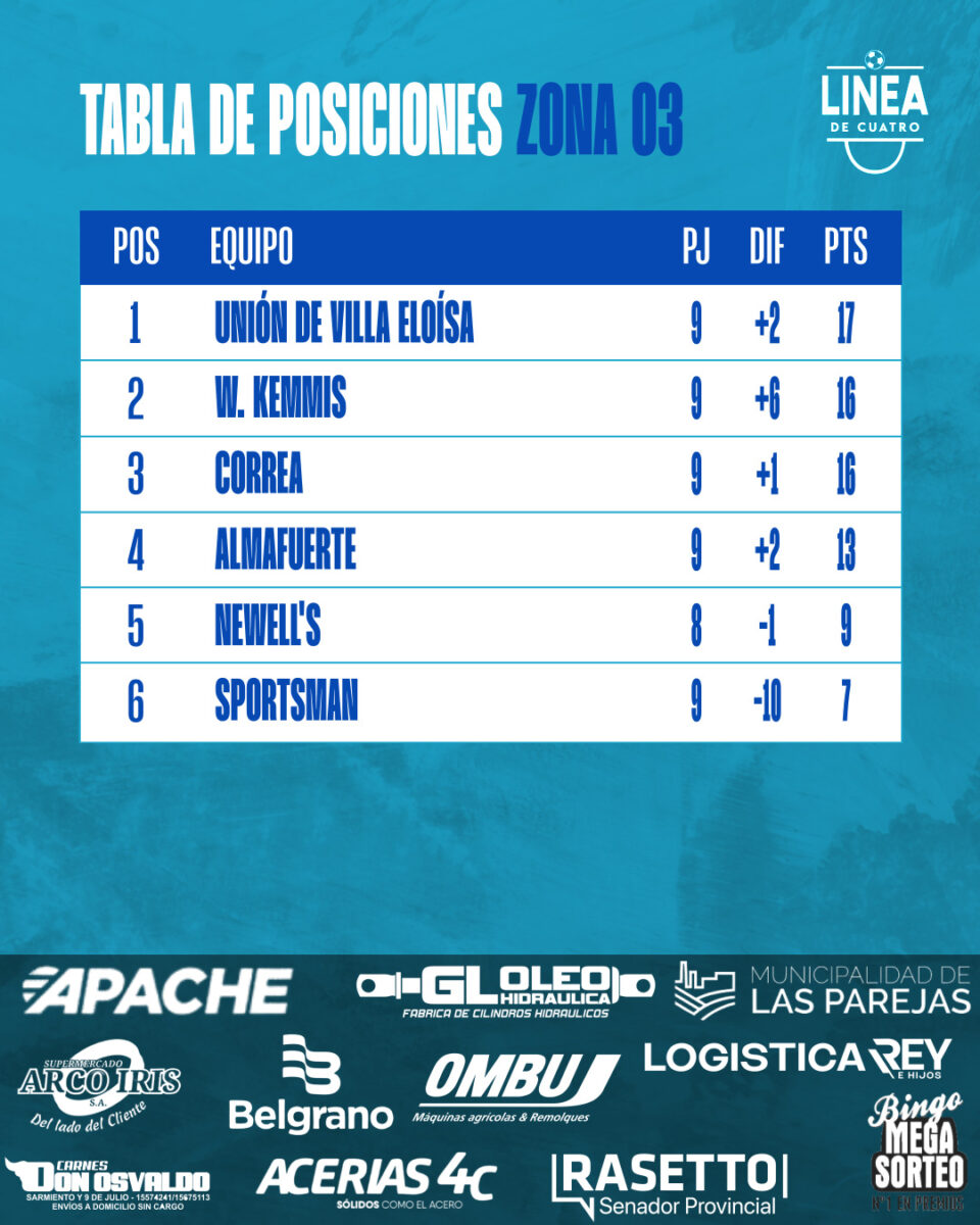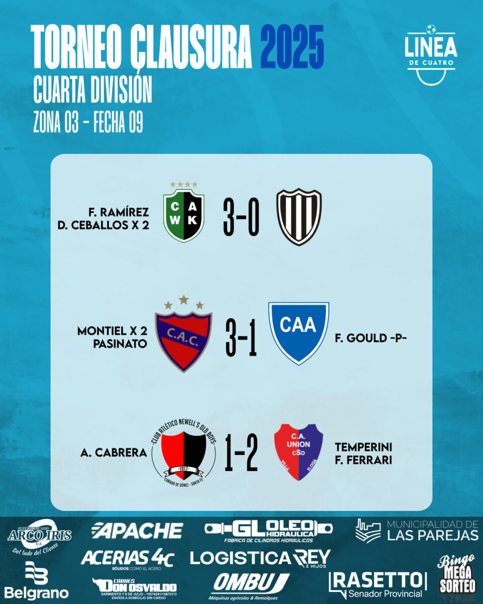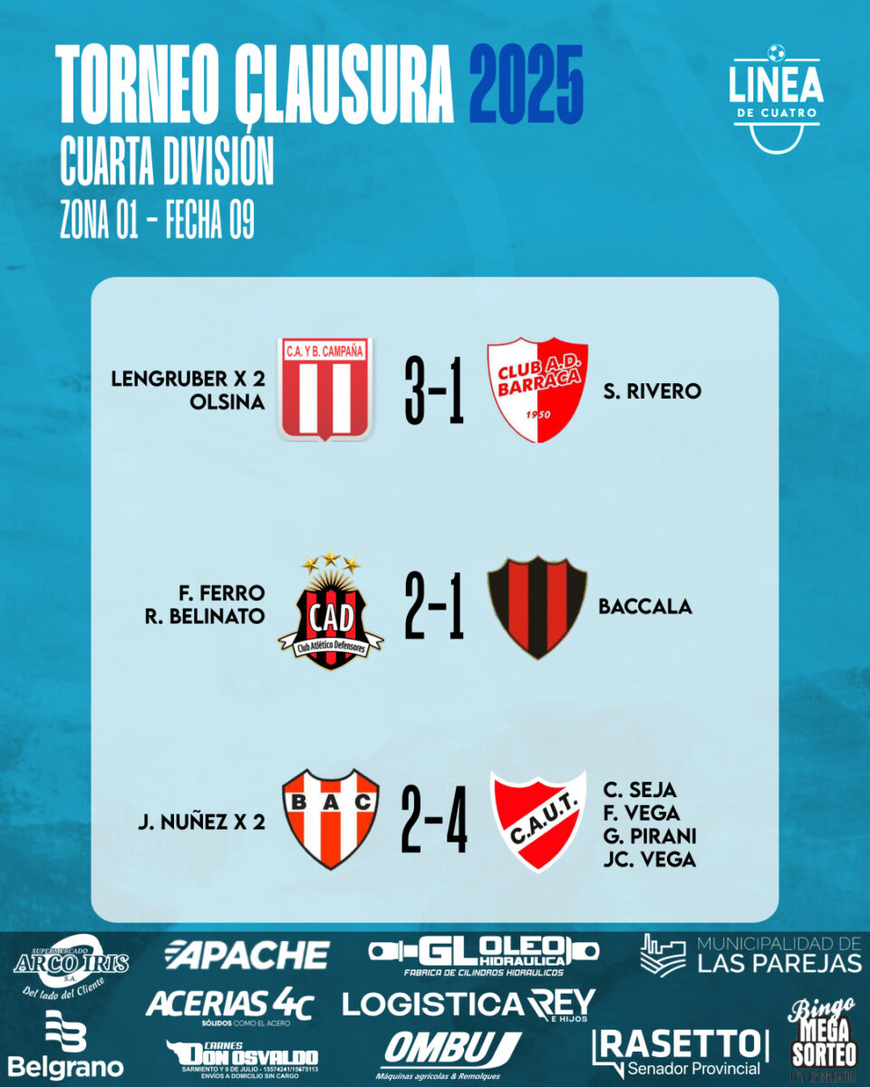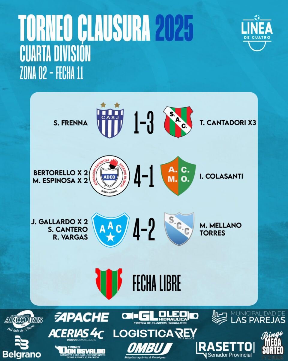 Se jugó la Fecha 09 de las Zonas 1 y 3 y la Fecha 11 de la Zona 2 del Torneo Clausura 2025 de Cuarta División de la Liga Cañadense y acá te dejamos los resultados y posiciones.