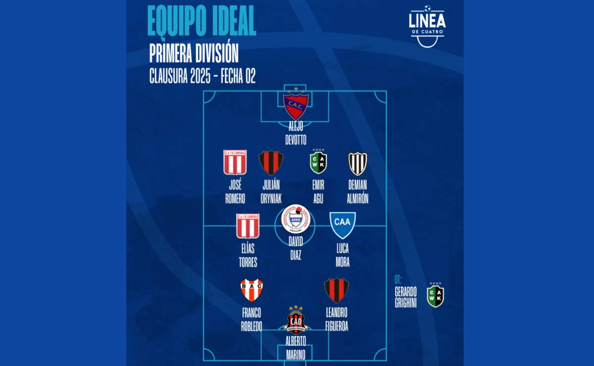 Línea de Cuatro eligió al equipo ideal de la Fecha 02, al menos de los 7 partidos que se jugaron, del Torneo Clausura 2025 de Primera División.