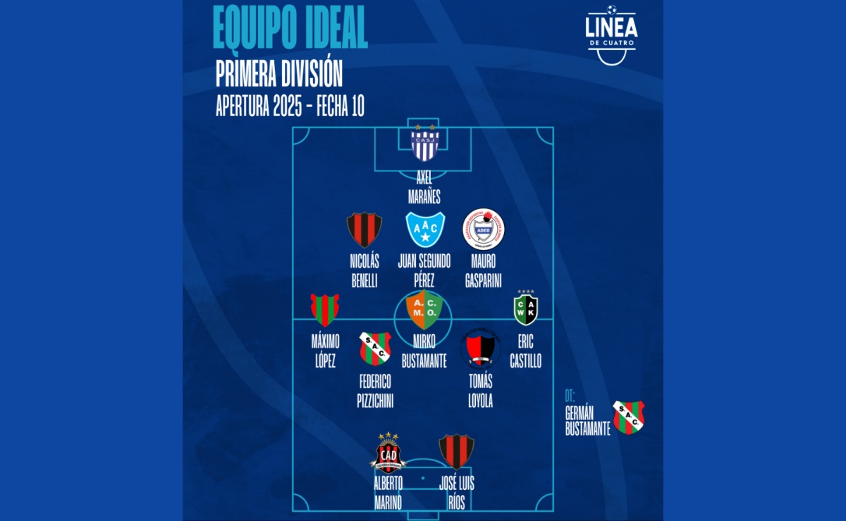 Línea de Cuatro eligió al equipo ideal de la Fecha 10 del Torneo Apertura 2025 de Primera División.