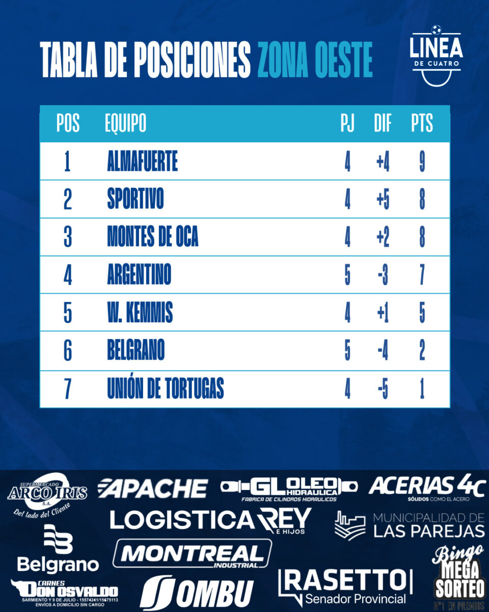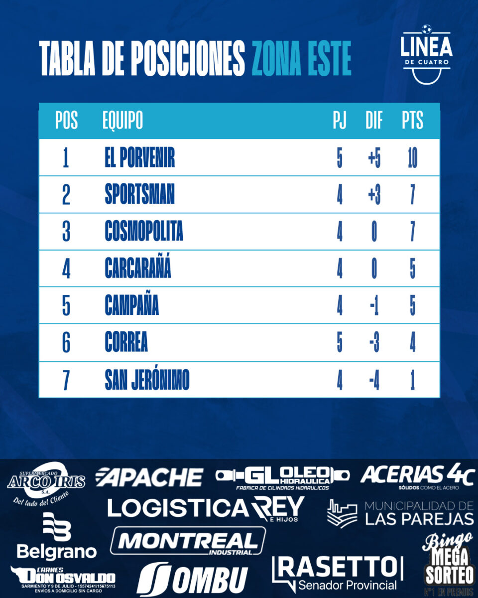 La tabla de posiciones tras la Fecha 05 del Torneo Apertura 2026 de Primera División de la Liga Cañadense.