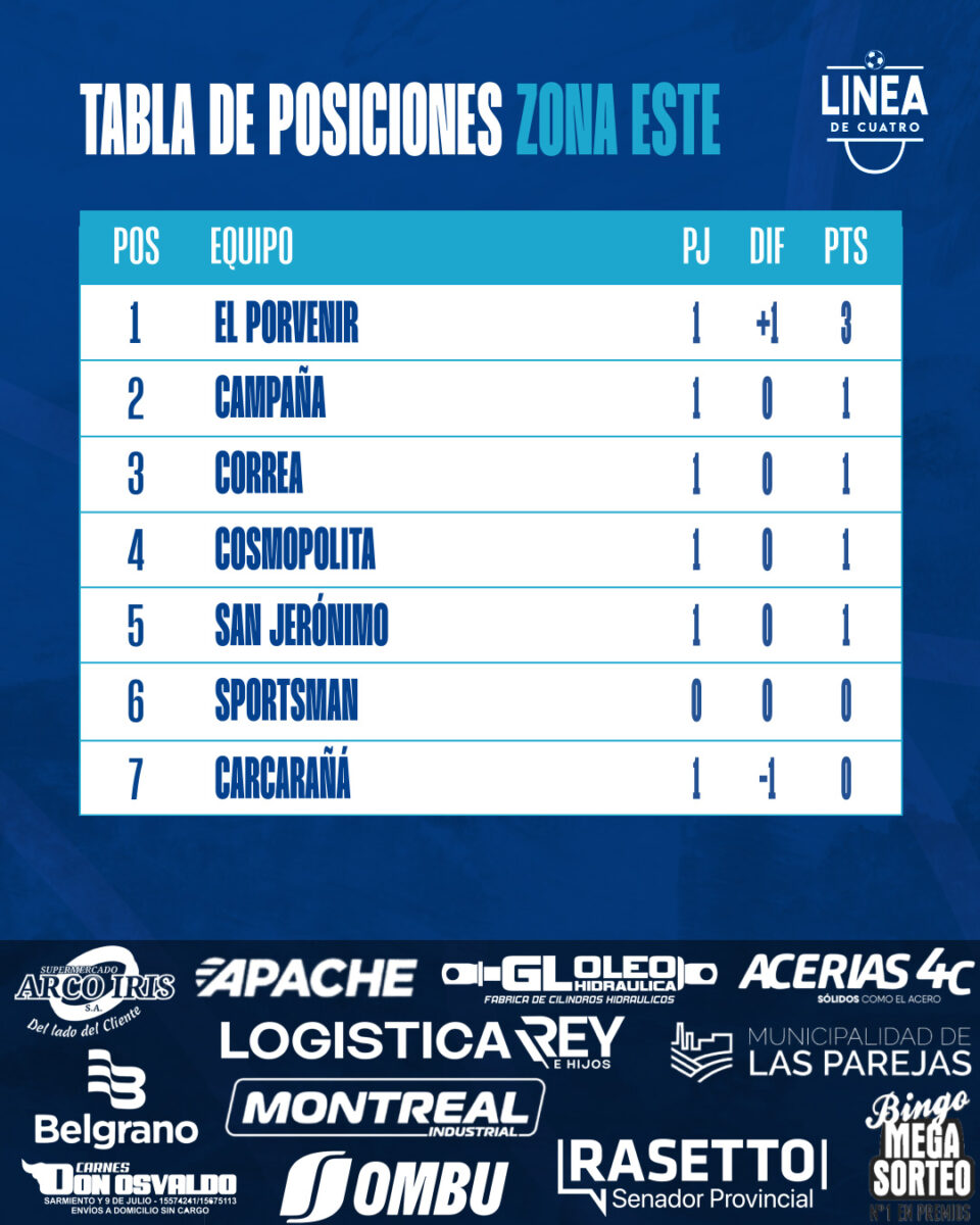 #LigaCañadenseDeFútbolLa tabla de posiciones tras la Fecha 01 del Torneo Apertura 2026 de Primera División de la Liga Cañadense. febrero 22, 2026 Liga Cañadense Tags: Apertura 2026 ,Liga Cañadense ,Primera División
