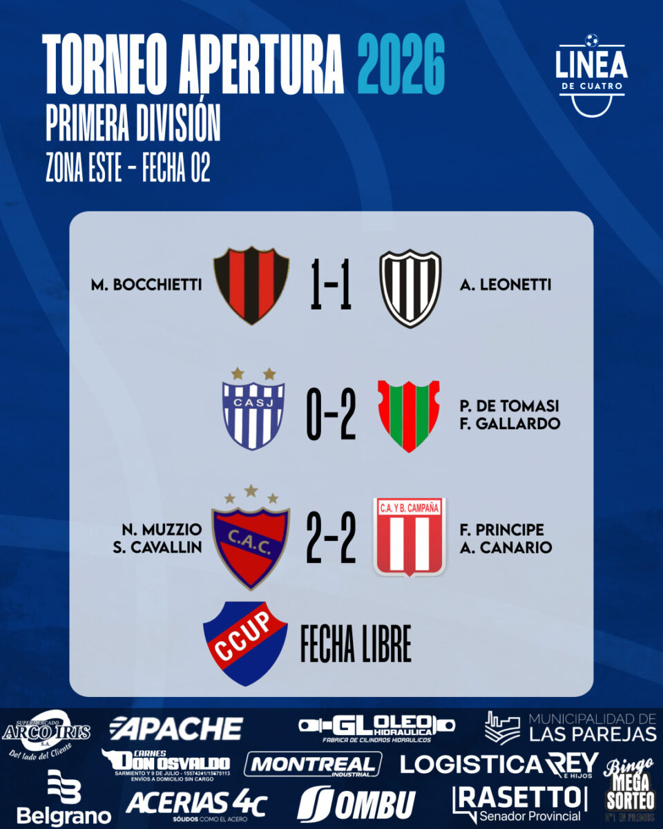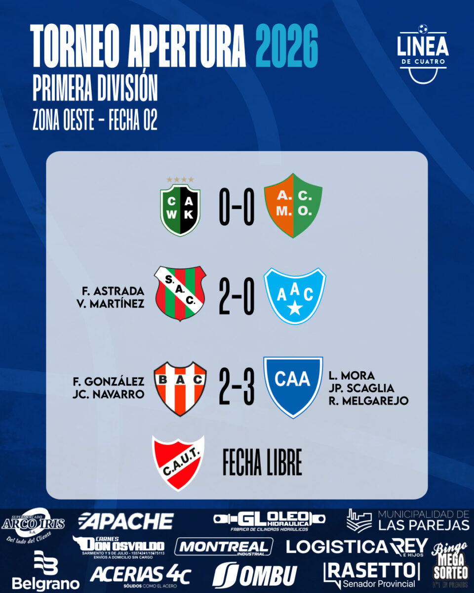 Se jugó la Fecha 02 del Torneo Apertura 2026 de Primera División de la Liga Cañadense y acá te dejamos los resultados.