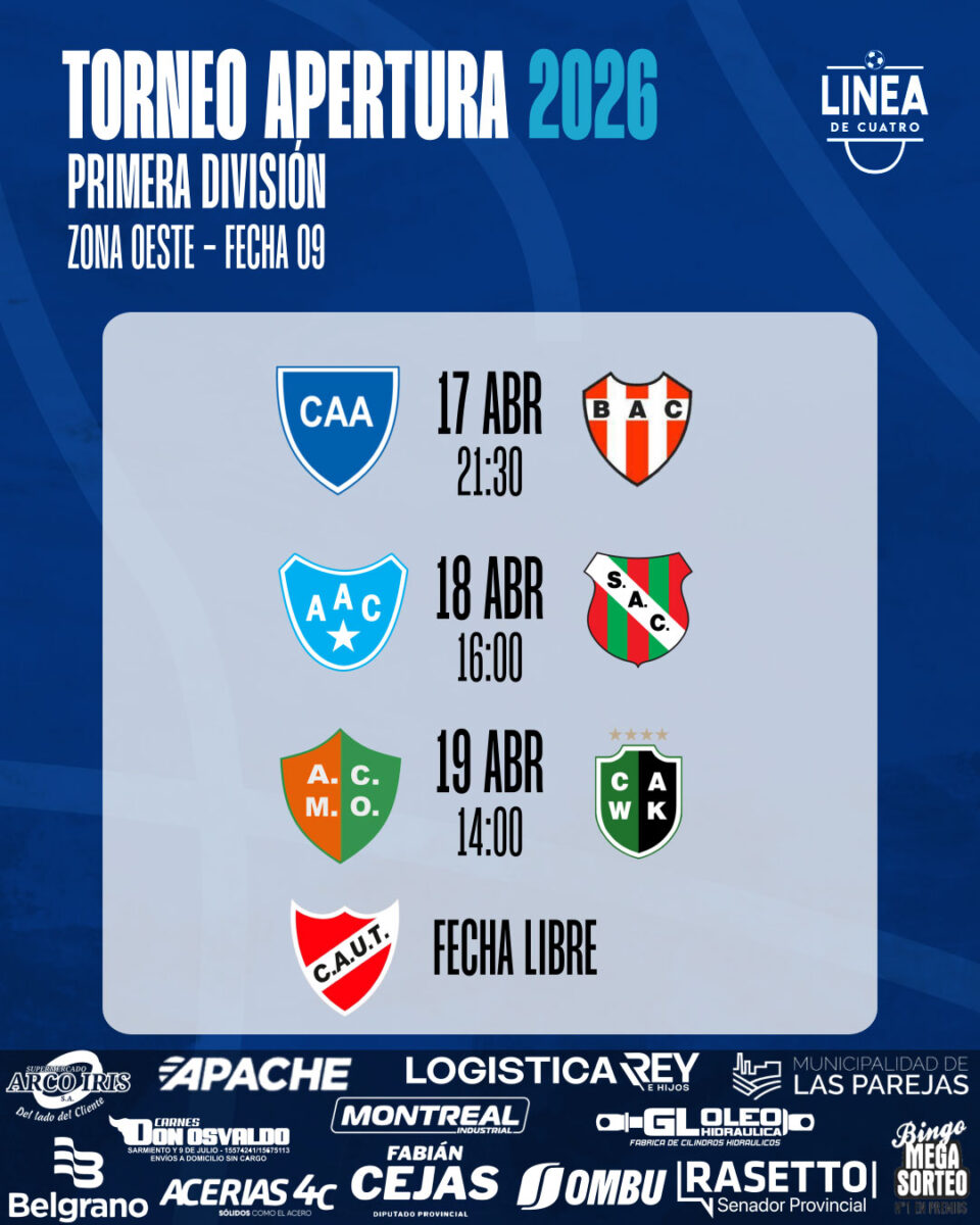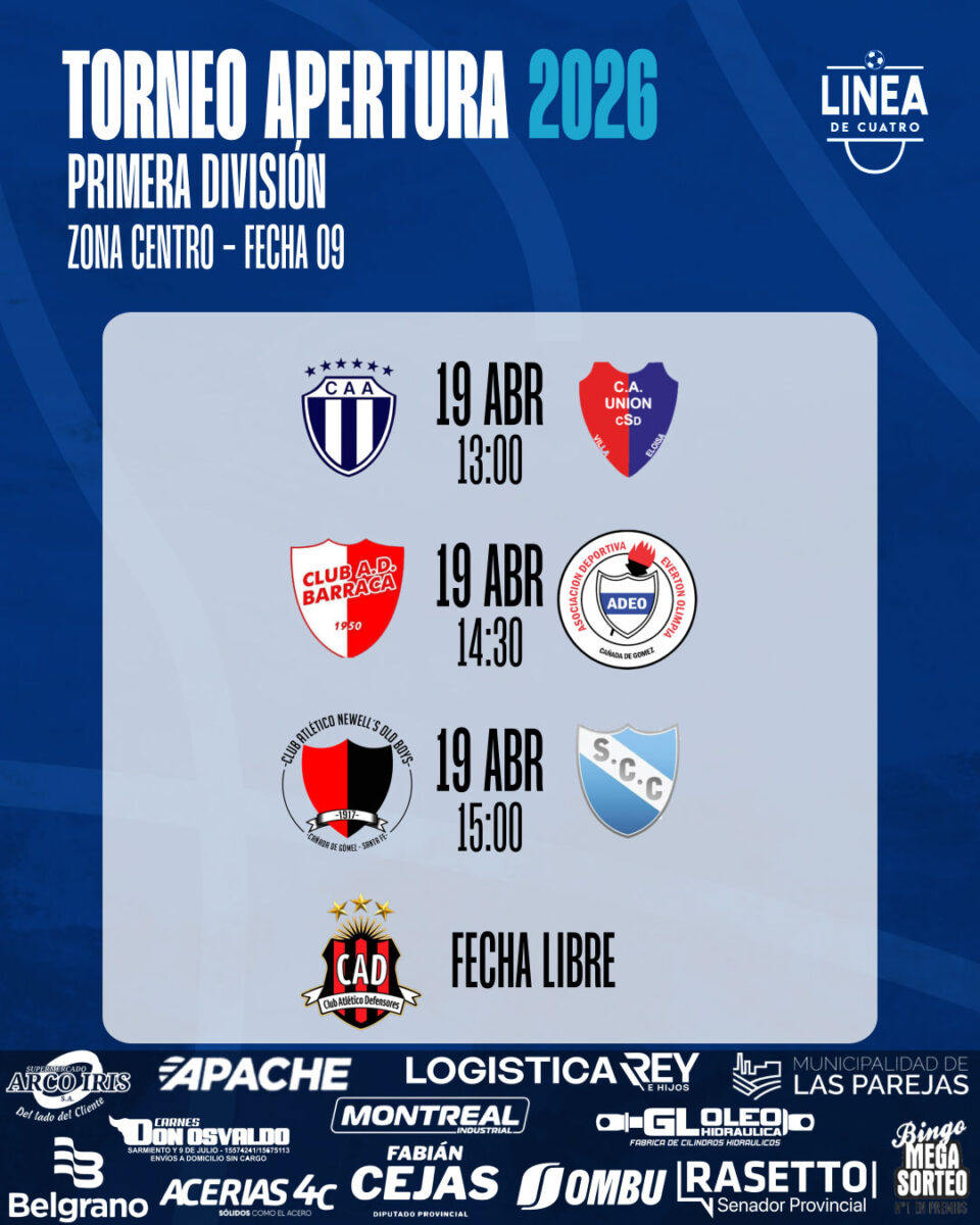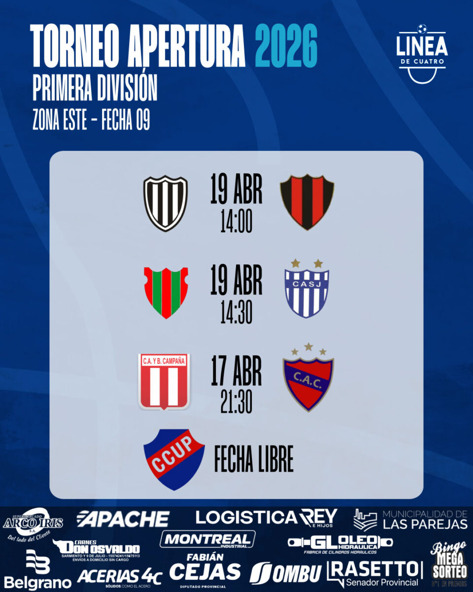 Así se jugará la Fecha 09 el Torneo Apertura 2026 de Primera y Cuarta División de la Liga Cañadense de Fútbol.