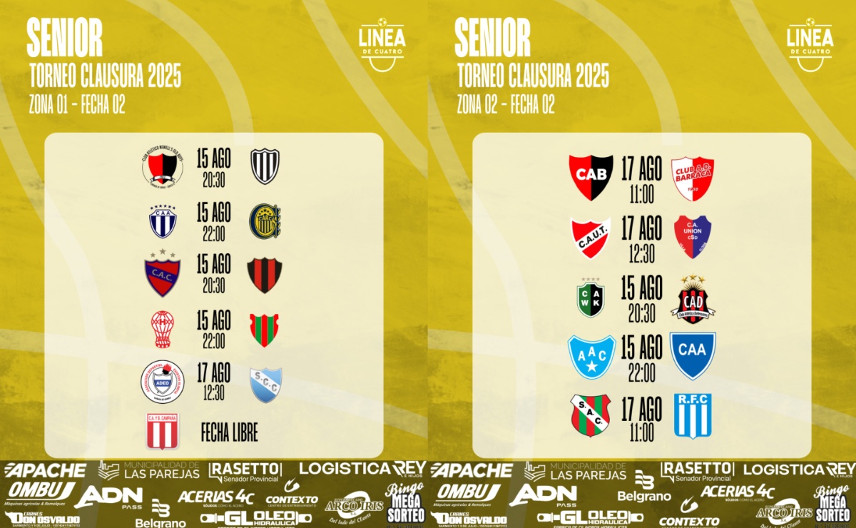 Así se jugará la Fecha 02 del Torneo Clausura 2025 del Fútbol Senior de la Liga Cañadense de Fútbol.