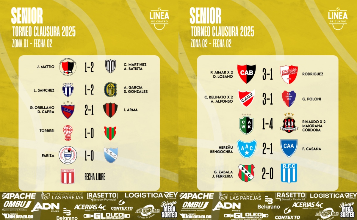 Se jugó la Fecha 02 del Torneo Clausura 2025 del Senior y acá te compartimos los resultados y posiciones.