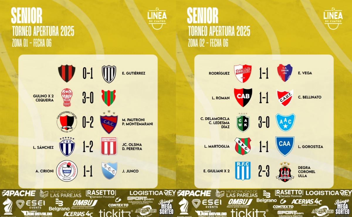 Se jugó la Fecha 05 del Torneo Apertura 2025 del Senior y acá te compartimos los resultados y posiciones.