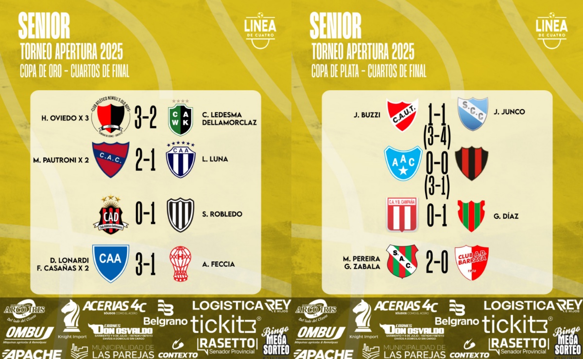 Se jugaron los Cuartos de Final de la Copa de Oro y de la Copa de Plata del Torneo Apertura 2025 del Senior y acá te compartimos los resultados.