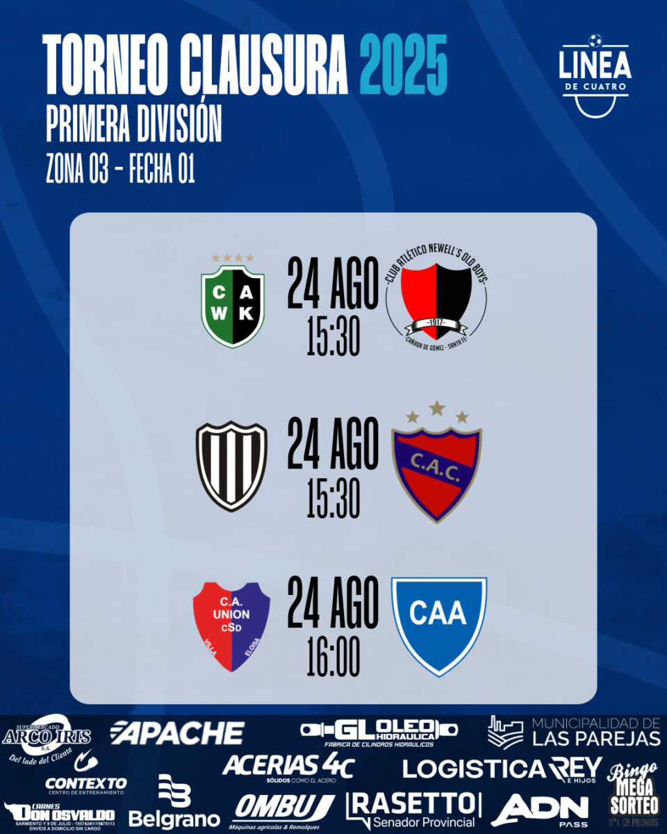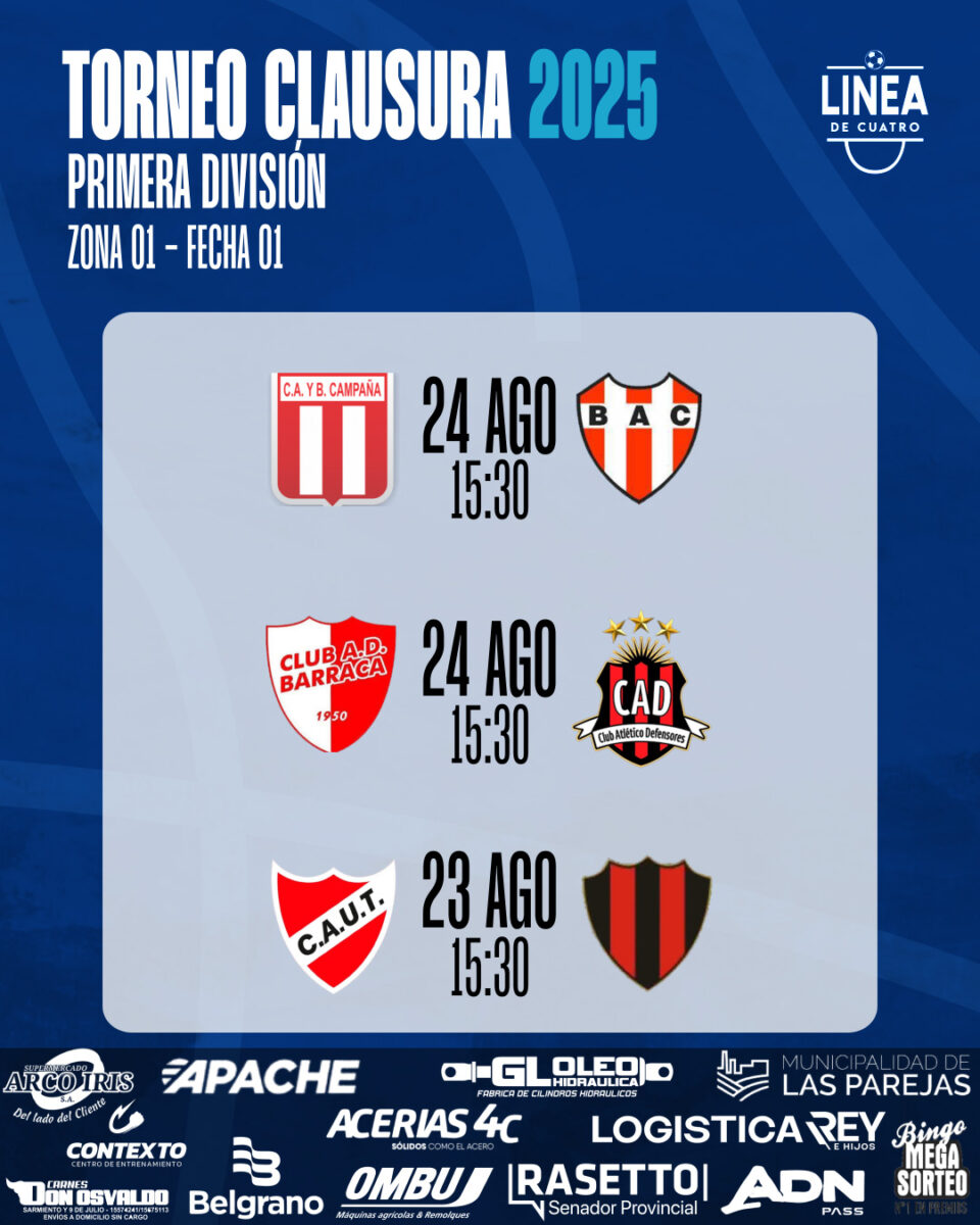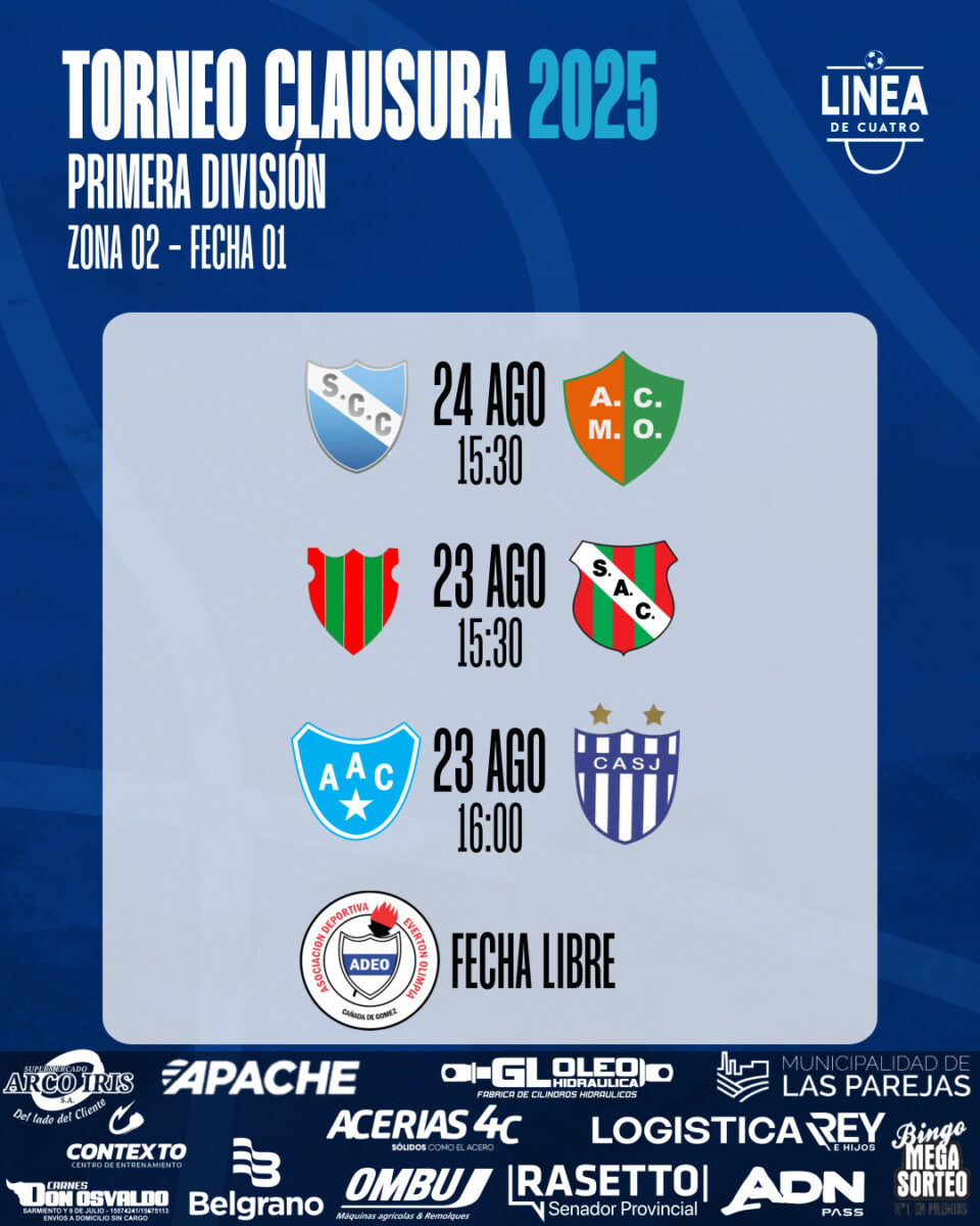 Así se jugará la fecha 01 del Torneo Clausura 2025 de Primera y Cuarta División.