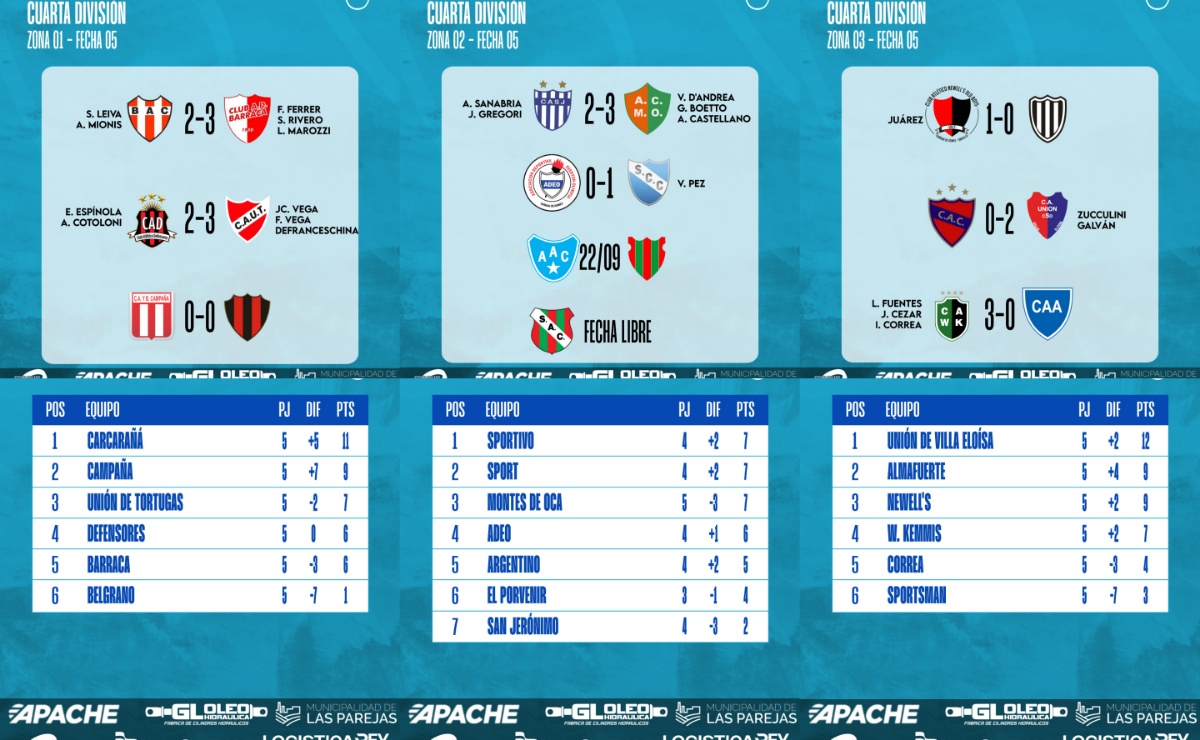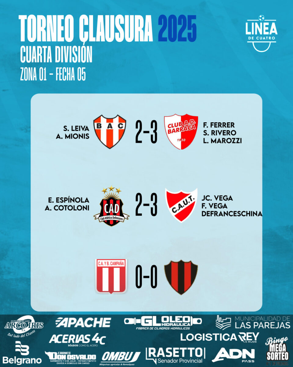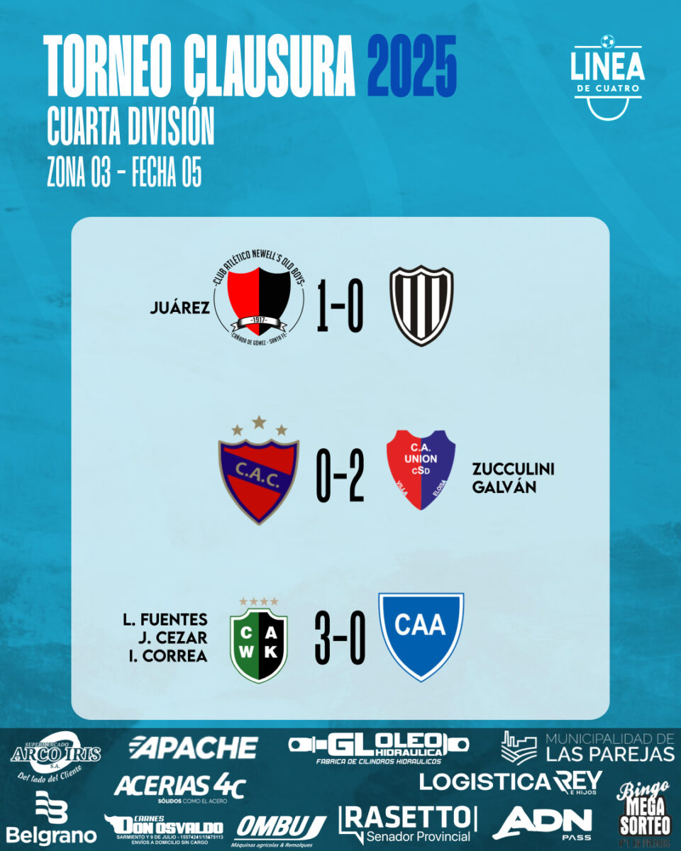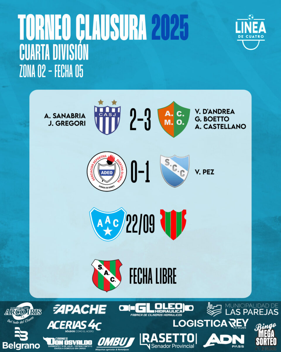 Se jugó la Fecha 05 del Torneo Clausura 2025 de Cuarta División de la Liga Cañadense y acá te dejamos los resultados y posiciones.