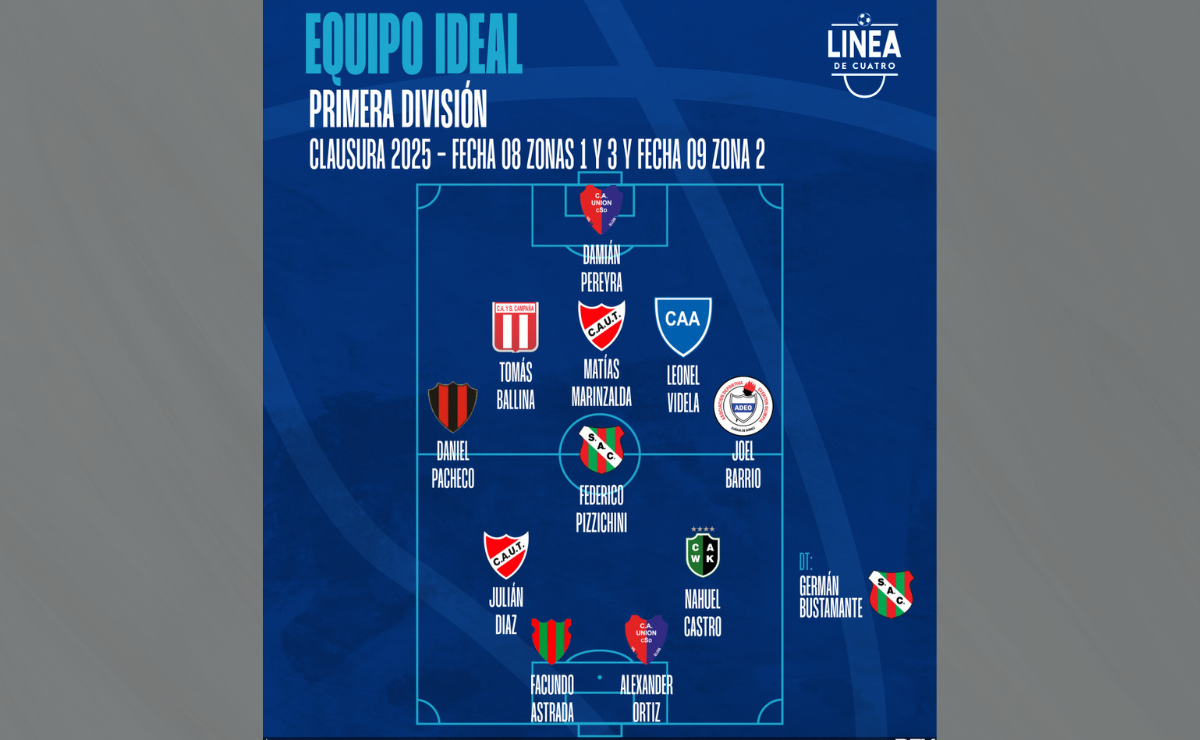 Línea de Cuatro eligió al equipo ideal de la Fecha 08 en las Zonas 1 y 3 y la Fecha 09 de la Zona 2 del Torneo Clausura 2025 de Primera División.