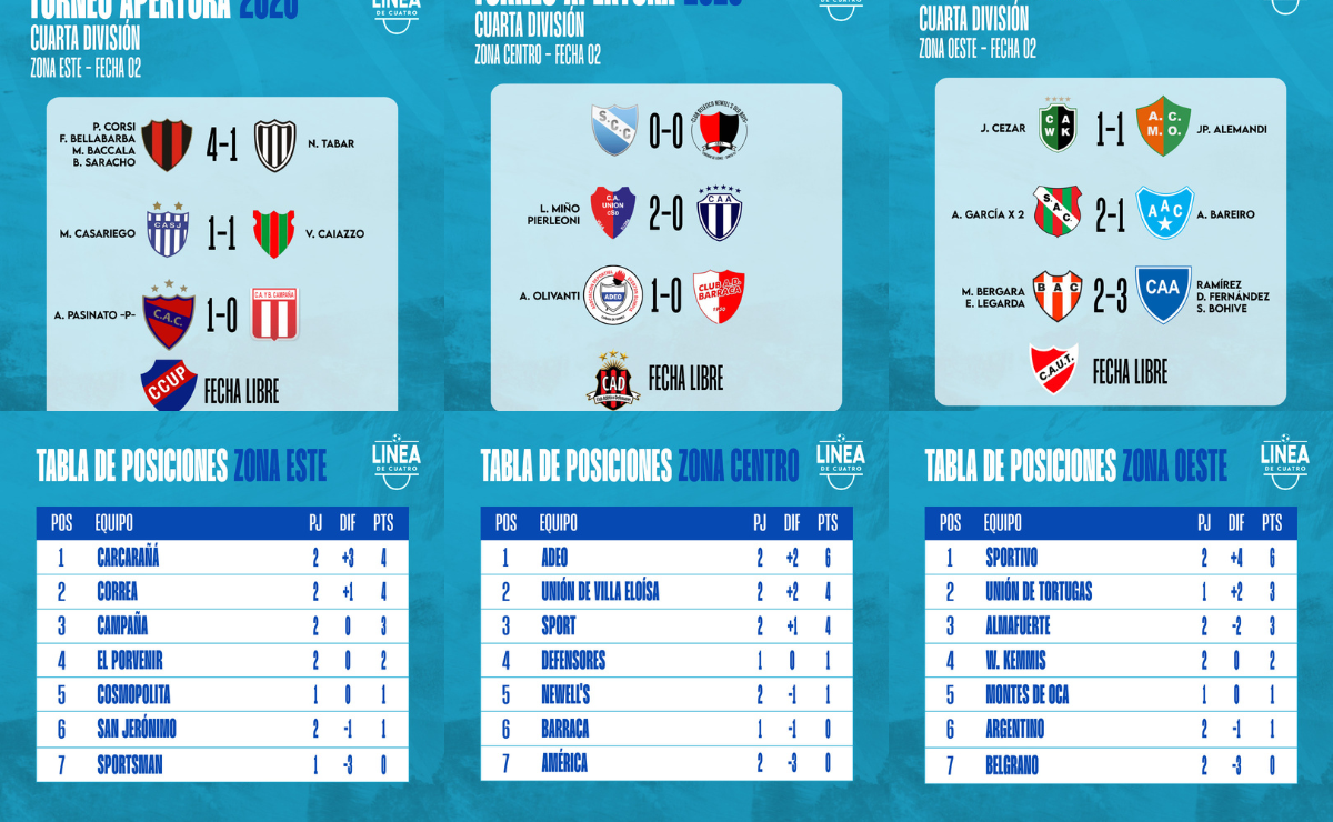 #LigaCañadenseDeFútbol Se jugó la Fecha 02 del Torneo Apertura 2026 de Cuarta División de la Liga Cañadense y acá te dejamos los resultados y posiciones.