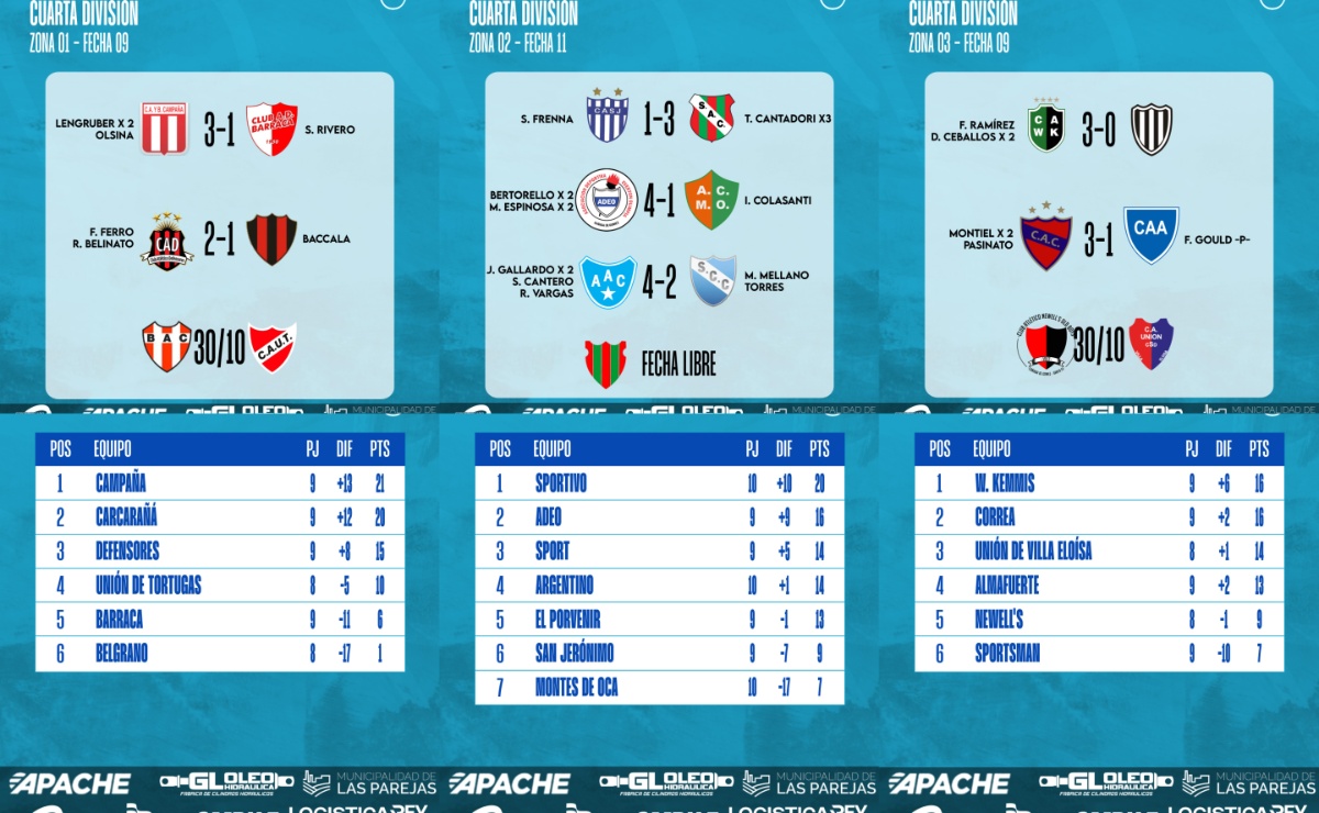 #LigaCañadenseDeFútbol Se jugó la Fecha 09 de las Zonas 1 y 3 y la Fecha 11 de la Zona 2 del Torneo Clausura 2025 de Cuarta División de la Liga Cañadense y acá te dejamos los resultados y posiciones.