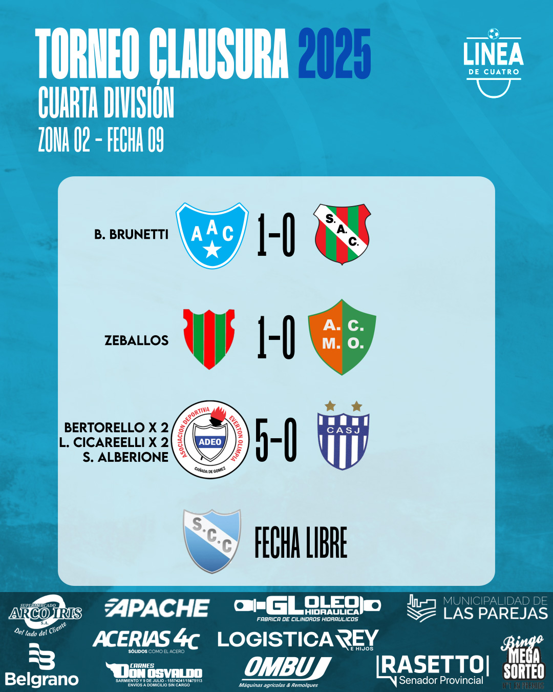 #LigaCañadenseDeFútbol Se jugó la Fecha 04 en la Zona 2 del Torneo Clausura 2025 de Cuarta División de la Liga Cañadense y acá te dejamos los resultados y posiciones.