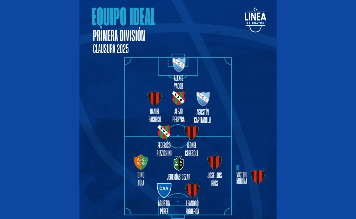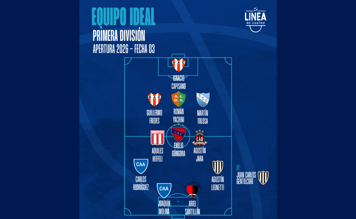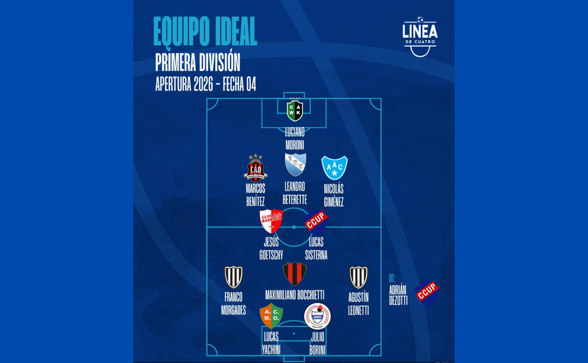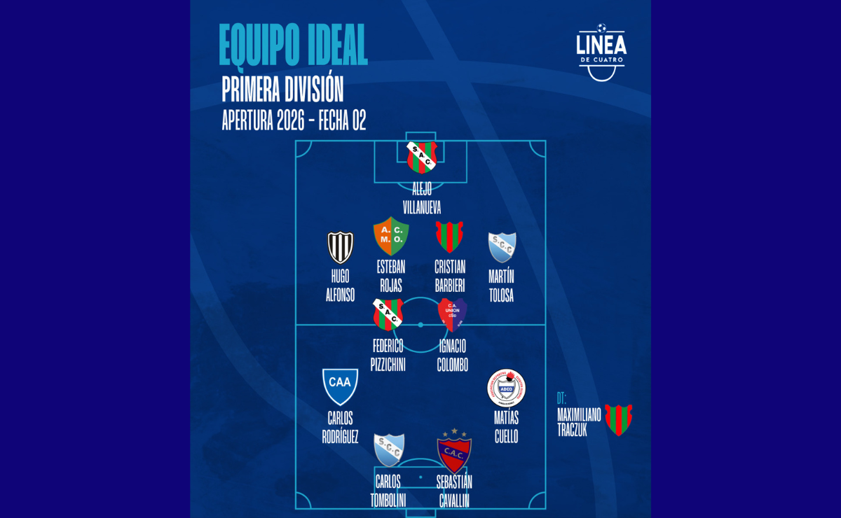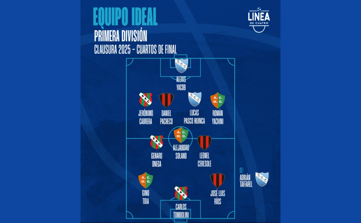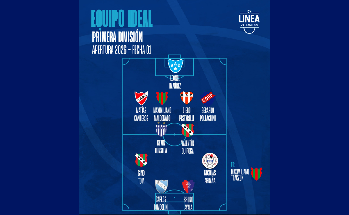 #LigaCañadenseDeFútbol Línea de Cuatro eligió al equipo ideal de la Fecha 06 del Torneo Apertura 2026 de Primera División. ✋Arquero: 👉Brandon Vercelli tuvo muchas y muy buenas intervenciones en Villa Eloísa, incluso hasta atajó un penal. En el arco también se destacaron Cerri (Tortugas) y Boggino (Montes de Oca). 🛡Defensores: 👉Milton Flores fue el pilar