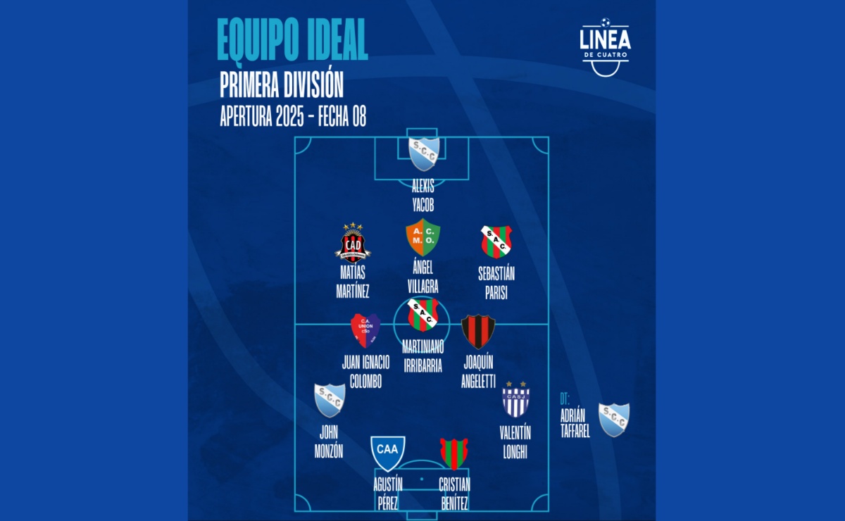 #LigaCañadenseDeFútbol Línea de Cuatro eligió al equipo ideal de la Fecha 08 del Torneo Apertura 2025 de Primera División. ✋Arquero:👉Alexis Yacob mostró mucha seguridad en el arco de Sport para mantener en cero su valla. Fue clave ya que su equipo jugó con 10 hombres durante 80 minutos. 🛡Defensores:👉Matías Martínez abrió el partido en Las
