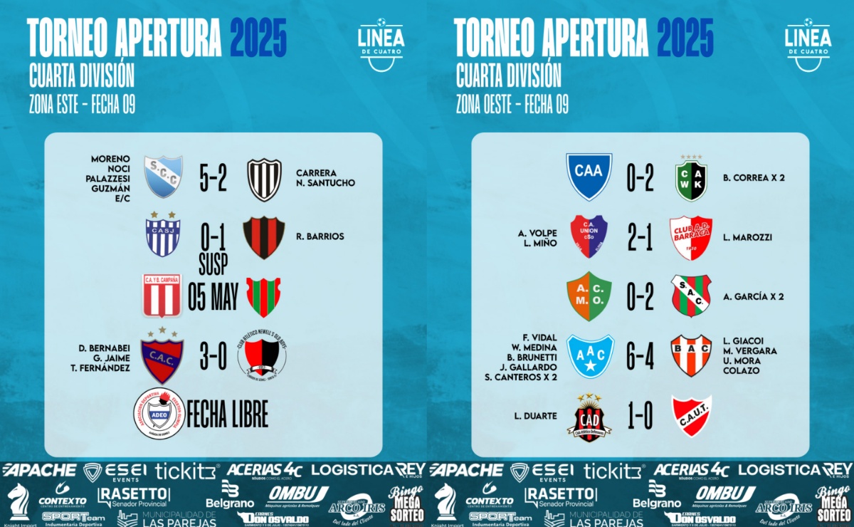#LigaCañadenseDeFútbol Se jugó la Fecha 09, la última de la primera rueda, del Torneo Apertura 2025 de Primera División de la Liga Cañadense y acá te compartimos los resultados. 👉Sport derrotó a la Cebra.👉Cremería se llevó los tres puntos del Bosque en un duro duelo.👉Correa lo dio vuelta sobre el final y venció a NOB.👉El