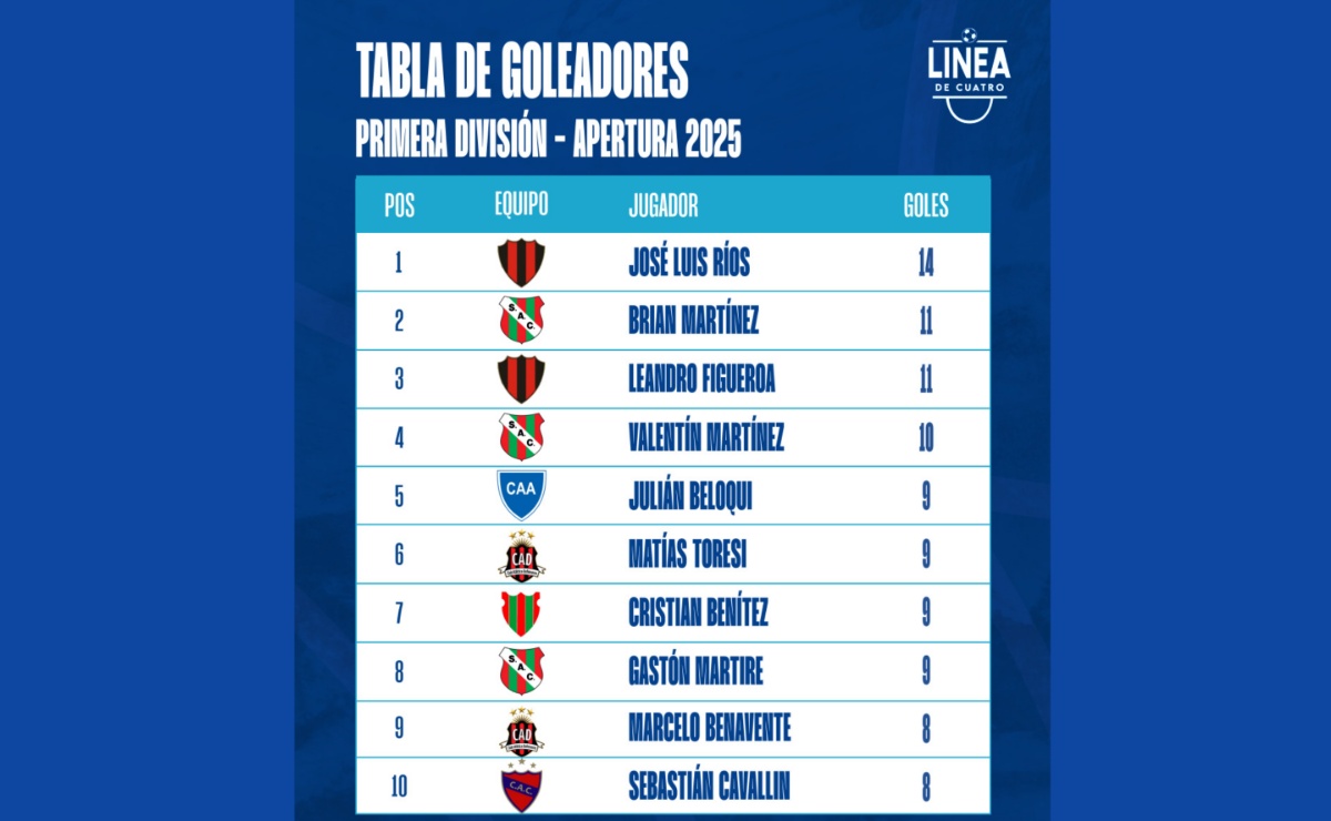 #LigaCañadenseDeFútbol José Luis Ríos es el máximo goleador del Torneo Apertura 2025 de Primera División. El volante ofensivo de Cremería marcó 14 goles en el certamen. Los goles de Ríos: ⚽⚽ Sportsman en la fecha 3 ⚽⚽ Newell’s en la fecha 6 ⚽⚽ Correa en la fecha 7 ⚽ Campaña en la fecha 8 ⚽