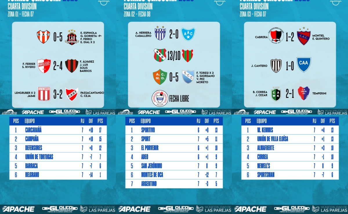 Cuarta División: Resultados y posiciones de la Fecha 07 de las Zonas 1 y 3 y la Fecha 08 de la Zona 2