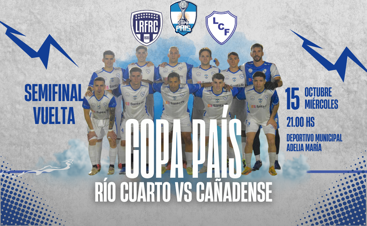 #CopaPaís El seleccionado de la Liga Cañadense va por el pase a la final Copa País – Semifinal – Vuelta 👉 Río Cuarto – Cañadense 📆 MIÉRCOLES 15/10 – ⏱️21:00 HS 🏟️ Estadio: Deportivo Municipal Adelia María La Cañadense quiere hacer valer el 2 a 0 conseguido en la ida y viaja para jugar la