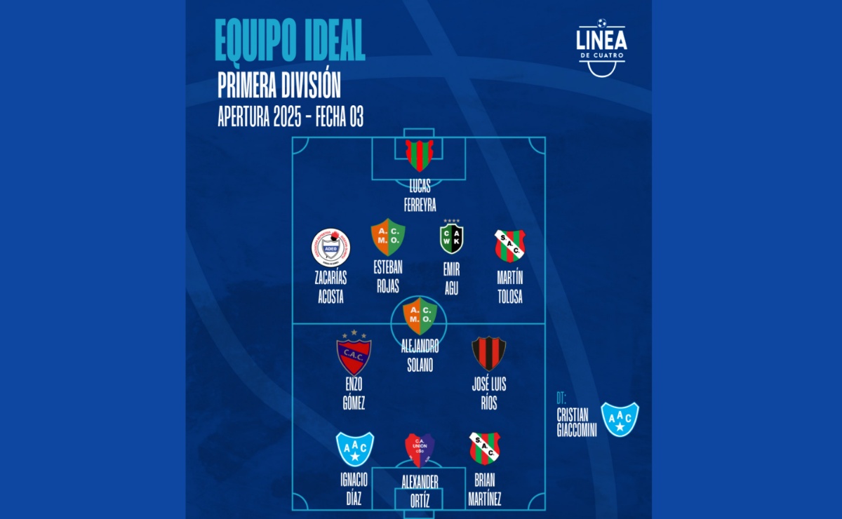 #LigaCañadenseDeFútbol Línea de Cuatro eligió al equipo ideal de la Fecha 02 del Torneo Apertura 2025 de Primera División. ✋Arquero:👉Alejo Villanueva se mostró seguro bajo los tres palos y tuvo una buena atajada en el Morumbí. 🛡Defensores:👉Ignacio Abramo se destacó por el costado y hasta metió un buen tiro desde afuera para completar la goleada.👉Matías